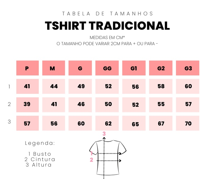 As medidas podem variar 2cm para mais (+) ou para menos (-)